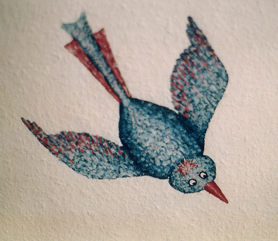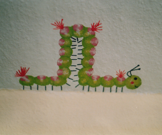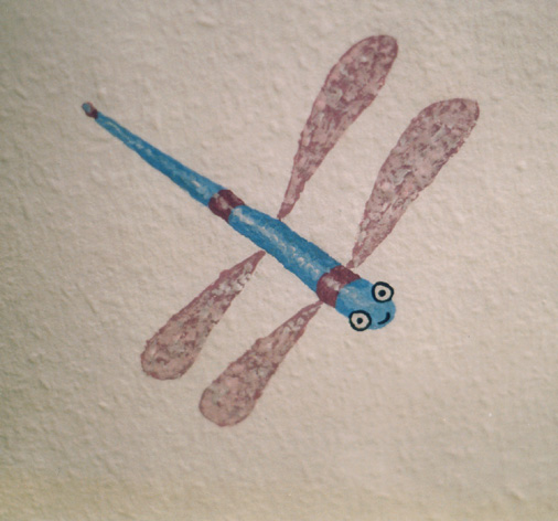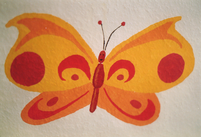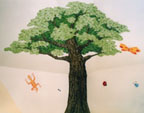 wandgestaltung im mütterzentrum hemhofen (der baum ist über die zimmerecke der dachschräge gemalt, wodurch man am fuß des baumstamms den eindruck hat, unter dem baum zu sitzen)