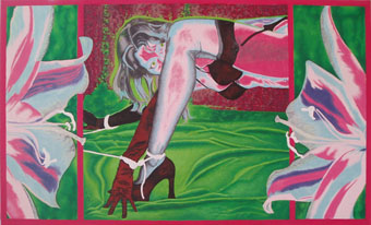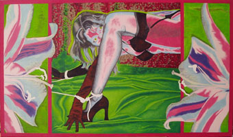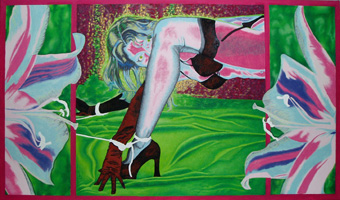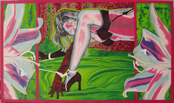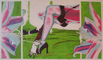 zur zeit arbeite ich an "violett in chains of love" im format 135 x 80. die jeweiligen fotos zeigen die resultate einzelner malphasen, die sich hauptsächlich übers wochenende erstrecken. sorry für die qualität der fotos! meist ist es schon spät in der nacht, wenn mir einfällt, daß ich ja noch eins machen wollte...